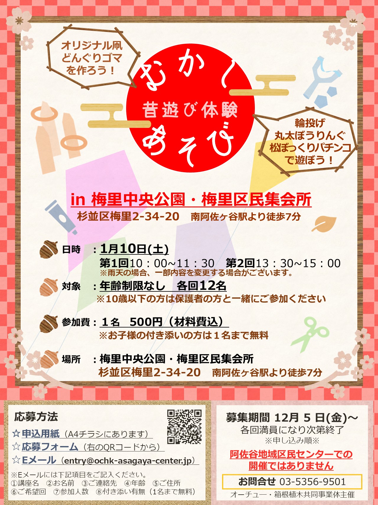【1月10日開催*梅里区民集会所】昔遊び体験