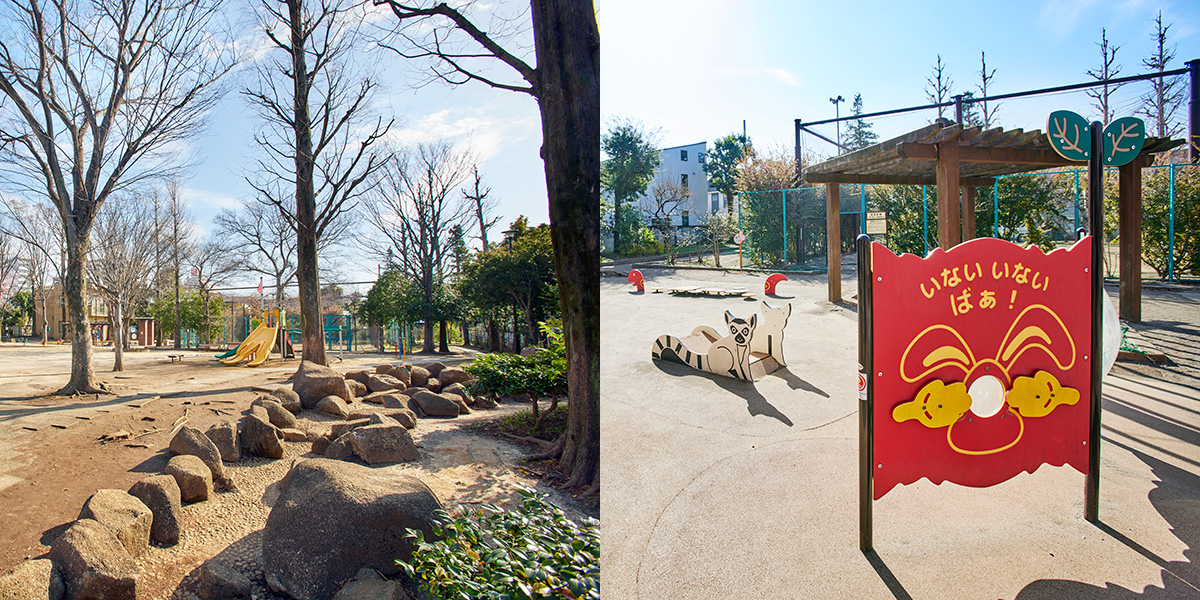 自然石を用いた流れ・池、土と草地の広場、木製遊具の広場と見所の多い公園です。 詳しくはこちら
